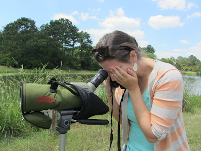 Using the scope we were able to get a great view of the birds, nests, and the fluffy little babies! Here Audrey demonstrates how to use the scope when winking-impaired :)